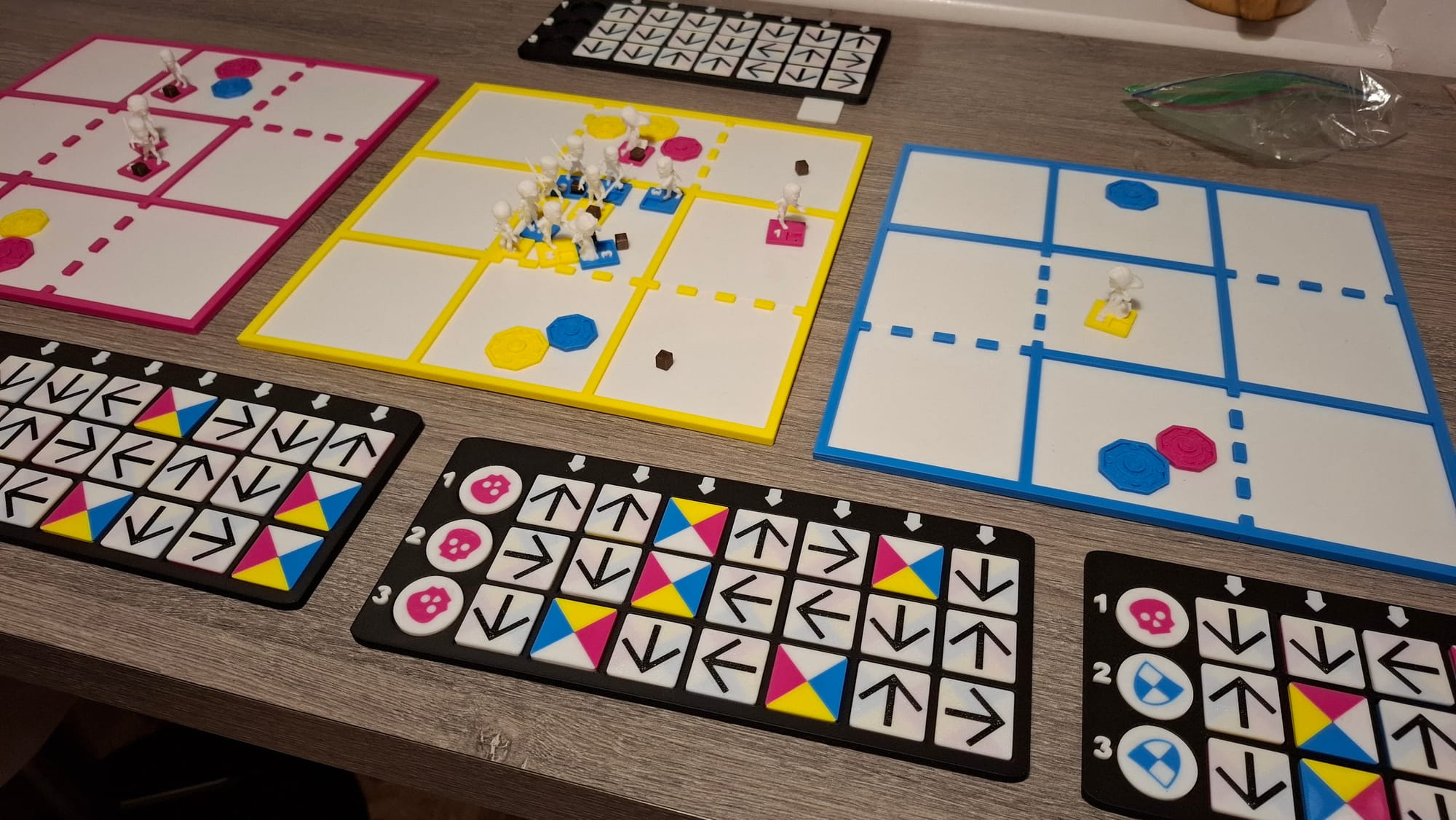 The first playtest was four players, about ninety minutes, a fair amount of re-explaining. Some players immediately grasped the "set up earlier characters to make things work for later ones" idea and started playing across all three loops from turn one. Others played more within each loop, treating it almost as three separate games. Both approaches worked, which felt like a good sign - the game has layers but doesn't require you to use all of them immediately.